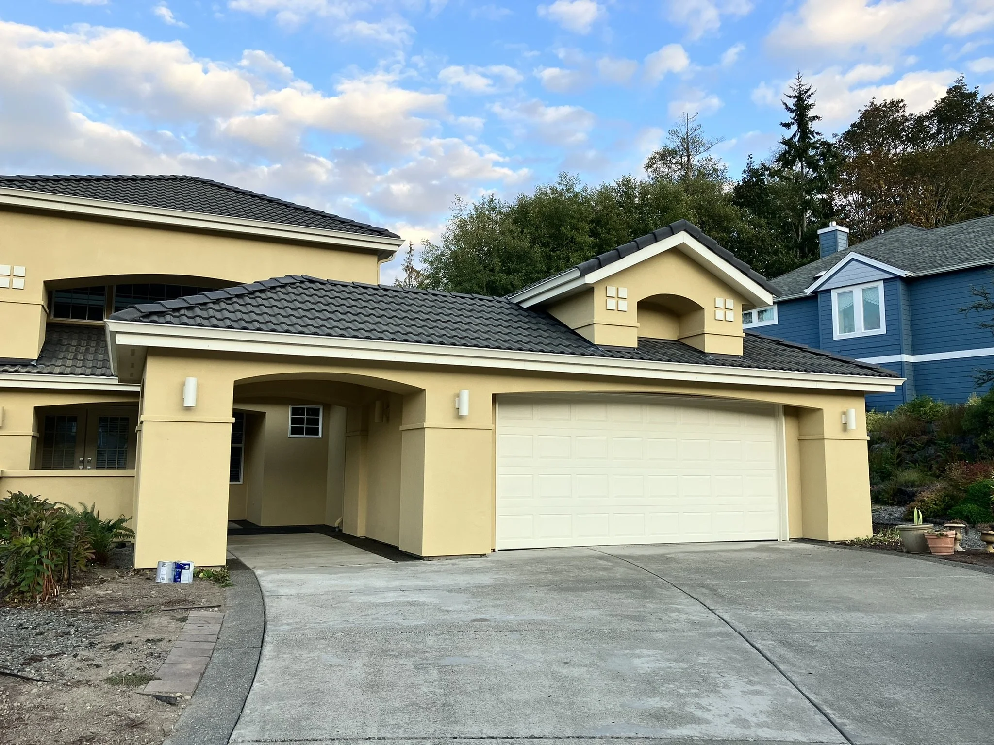 Another in beautiful Port Ludlow. Two coats sprayed and backrolled on stucco